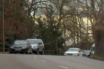 Erstens, weil mir ein Auto mitten in meine Aufnahme hineingeplatzt ist. In den EXIF Meta Daten steht, dass das Bild mit 1/200 Sekunde aufgenommen wurde. Und wäre der Fahrer auch wirklich mit Tempo 30 über die Brücke gefahren, wäre das nicht passiert.